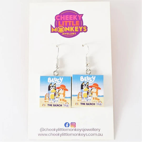 Teachers, early childhood educators, librarians or just anyone Bluey obsessed, these handmade Bluey The Beach book earrings are your perfect accessory! A miniature replica the most popular Bluey book, you'll have heads turning everywhere to catch a glimpse of your gorgeous earrings.